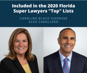 Each year, Super Lawyers recognizes the top lawyers in Florida via a patented multiphase selection process involving peer nomination, independent research and peer evaluation. The Florida lawyers who receive the highest point totals during this selection process are further recognized in Florida Super Lawyers Top Lists. We are extremely proud of Caroline Black Sikorske and Alexander Caballero, who are named to the lists of “Top 100: 2020 Florida Super Lawyers,” and “Top 50: 2020 Tampa Bay Super Lawyers.” In addition, Caroline is included on the lists of “Top 50: 2020 Women Florida Super Lawyers” and “Top 10: 2020 Florida Super Lawyers.” Congratulations to all of the attorneys statewide who are named to the Florida Super Lawyers “Top” lists.