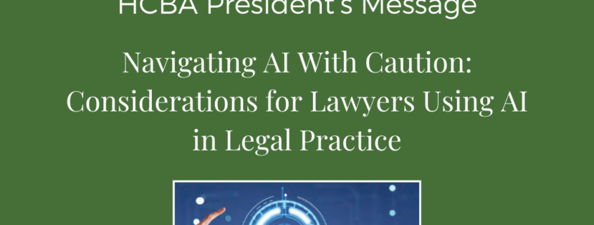 The March–April issue of the Hillsborough County Bar Association Lawyer magazine has just been posted. In his President’s Message, Alex Caballero offers some considerations for navigating AI in legal practice to harness its benefits while upholding the integrity and professionalism of our legal services. Read it at bit.ly/HCBALawyer_MarApr24.